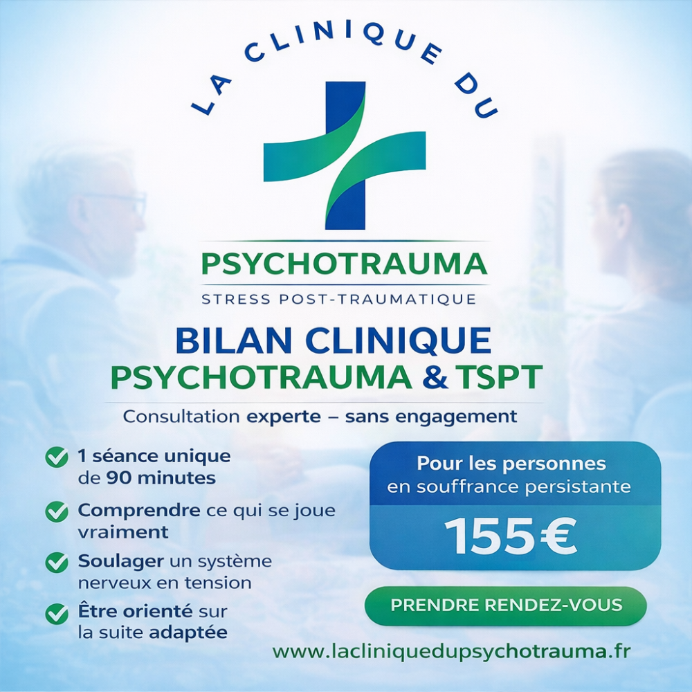 A la Clinique du Psychotrauma nous accompagnons les personnes souffrant de traumatismes psychiques, de TSPT et de TSPT-Complexe, dans un cadre sécurisé, progressif et respectueux.